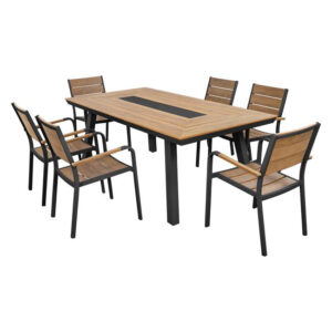 Der Tisch mit Polywood-Oberfläche ist der diesjährige Dekorationstrend für den Außenbereich.